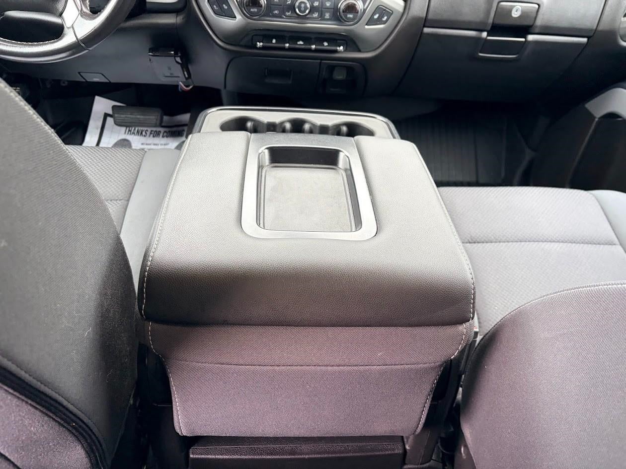 - Seats, front 40/20/40 split-bench, 3-passenger, available in cloth or leather includes driver and front passenger recline with outboard head restraints and center fold-down armrest with storage. Also includes manually adjustable driver lumbar, lockable storage compartment in seat cushion, and storage pockets. (Leather with (KA1) heated seat cushions and seat backs is an available extra charge option with (H1Y) Jet Black leather appointed interior trim and requires (PCM) LT Convenience Package, (PDA) Texas Edition or (PDU) All Star Edition. Includes (AG1) driver 10-way power seat-adjuster with (PCM) LT Convenience Package, (PDA) Texas Edition or (PDU) All Star Edition. When (G1K) Deep Ocean Blue Metallic or (GPA) Graphite Metallic exterior color is ordered on C*1**53 Double Cab models, requires (H0U) Jet Black cloth interior.)